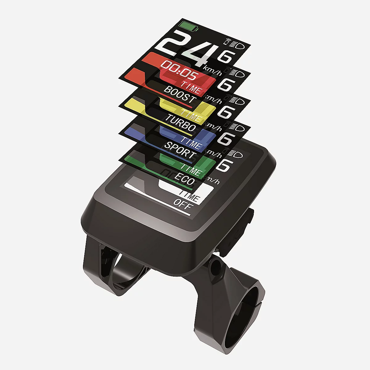 – Tableau de bord : niveau de la batterie, kilométrage du vélo..