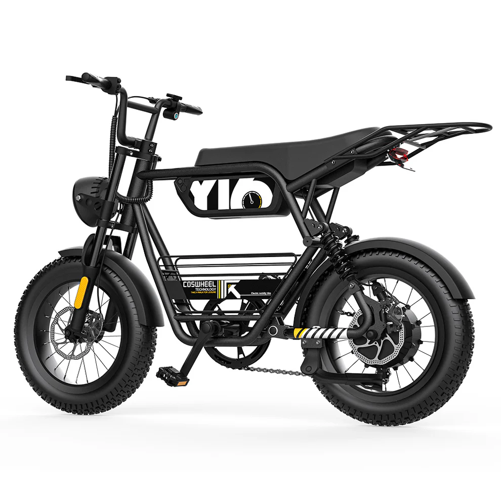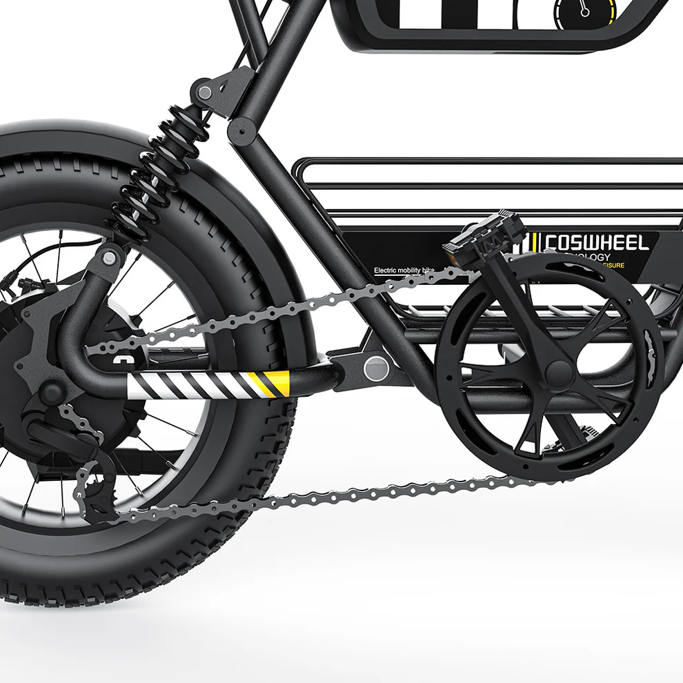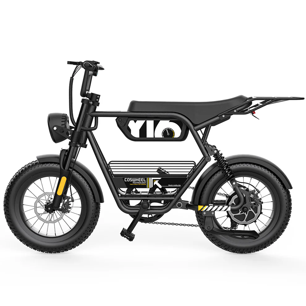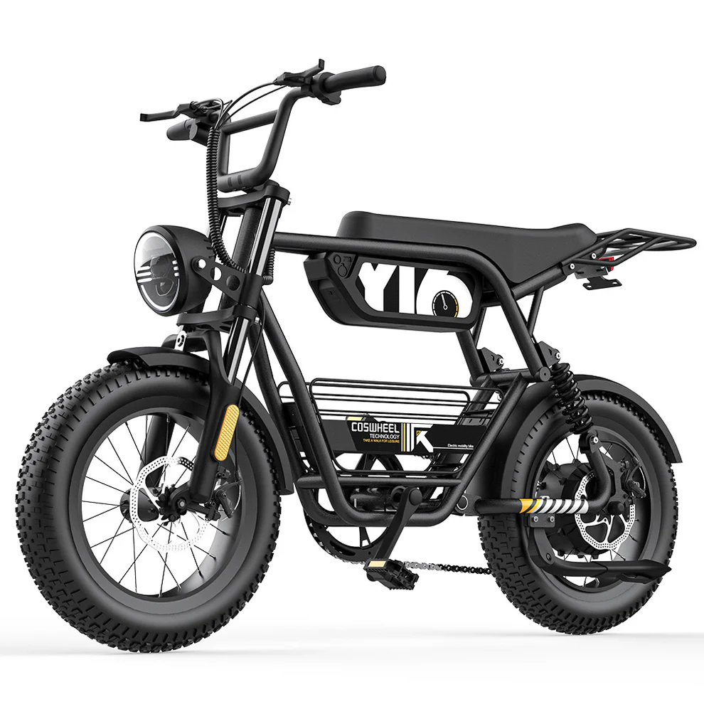 Osez l’aventure tout-terrain avec le COSWHEEL Y16,un fat bike électrique compact et tout-terrain, idéal pour les amateurs de sensations fortes. Avec sa batterie 48V 15Ah, ses pneus Fat 16 x 4.0 pouces, sa double suspension et son design robuste, il offre confort, puissance et stabilité sur route comme hors des sentiers battus. Conforme aux normes européennes avec une vitesse maximale de 25 km/h.