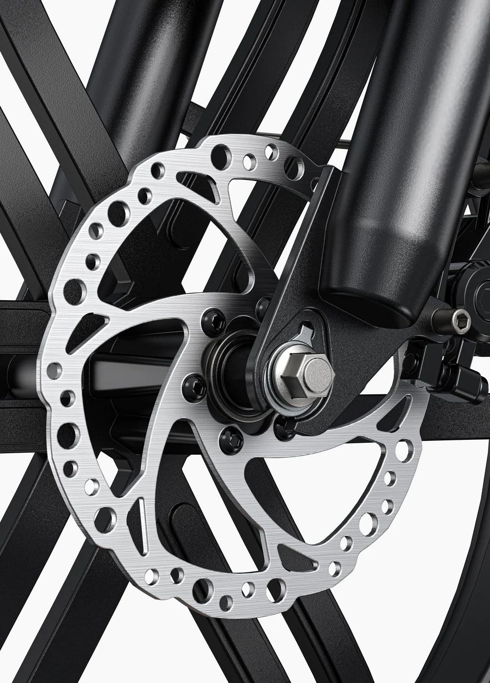 ✔︎ Freins à disque mécaniques 160 mm. Freinage efficace et sûr, quelles que soient les conditions.