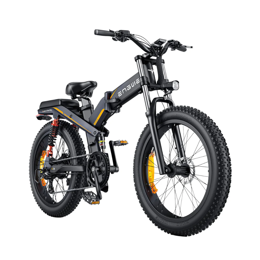 Le ENGWE X24 est un vélo électrique pliable conçu pour dominer tous types de terrains, sans compromis sur le confort ni sur l’autonomie. Grâce à son moteur, sa double batterie totalisant 29,2Ah et sa suspension triple, il offre une expérience de conduite exceptionnelle, même sur les parcours les plus exigeants. Conforme à la législation européenne, il est limité à 25 km/h pour une utilisation légale et sécurisée.Repoussez vos limites avec le ENGWE X24 !