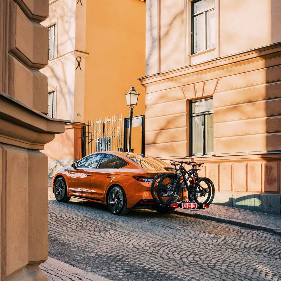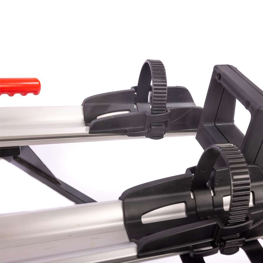 Le porte-vélos Sarek de Mont Blanc est conçu pour transporter jusqu’à deux vélos, y compris vélos électriques, avec une capacité de 30 kg par vélo. Grâce aux systèmes EasyGo et ReadyFit, il s’installe facilement sans outils et est livré prêt à l’emploi. Compatible avec des pneus jusqu’à 3 pouces et un empattement de 1350 mm, il convient à une large gamme de vélos. Son système inclinable permet d’accéder au coffre même lorsque les vélos sont chargés. Équipé d’un kit feux avec connecteur 13 broches, il assure une visibilité optimale sur la route. Une fois replié, il se range facilement. NOUVEAU : l’Extension Sarek Extra Bike est désormais disponible, permettant d’ajouter un troisième vélo en toute simplicité.