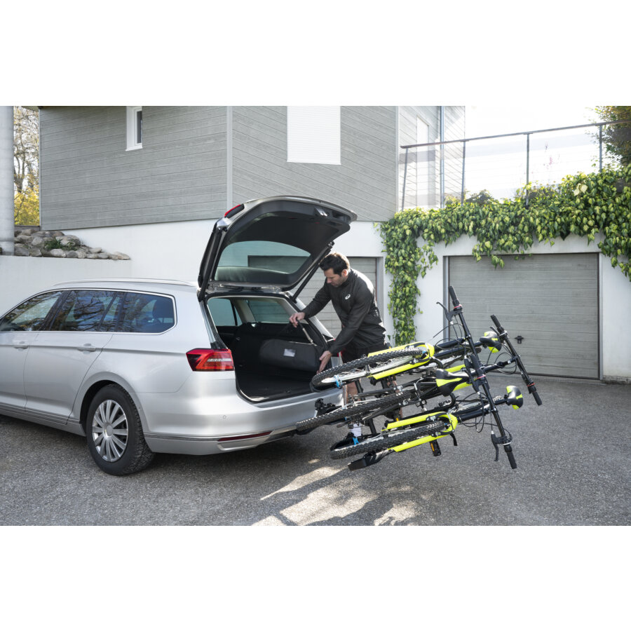 Equipé d’une serrure antivol sur la boule d’attelage pour le porte-vélo. Nous vous conseillons de vous équiper d’un câble antivol pour vos vélos afin de les sécuriser.