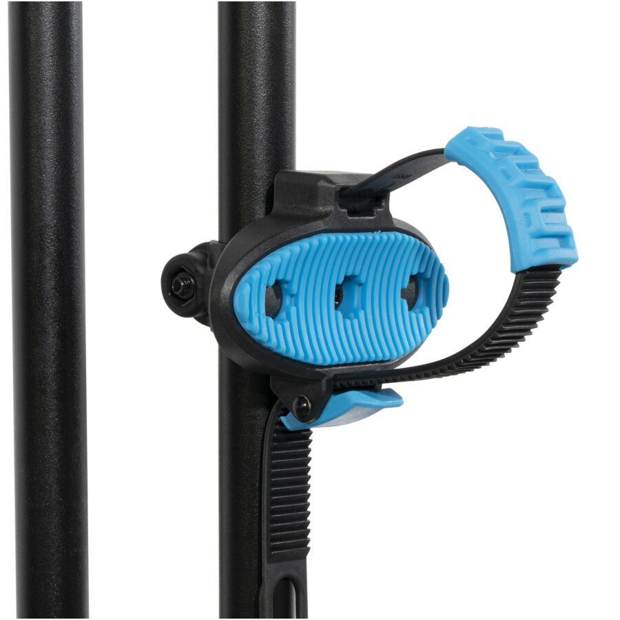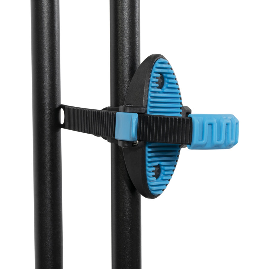 La sangle d’attache au niveau est recouverte d’une protection en caoutchouc pour protéger la peinture du vélo pendant les longs trajets. Le support de cadre est ajustable très facilement en hauteur pour s´adapter à la taille et à la géométrie du vélo.