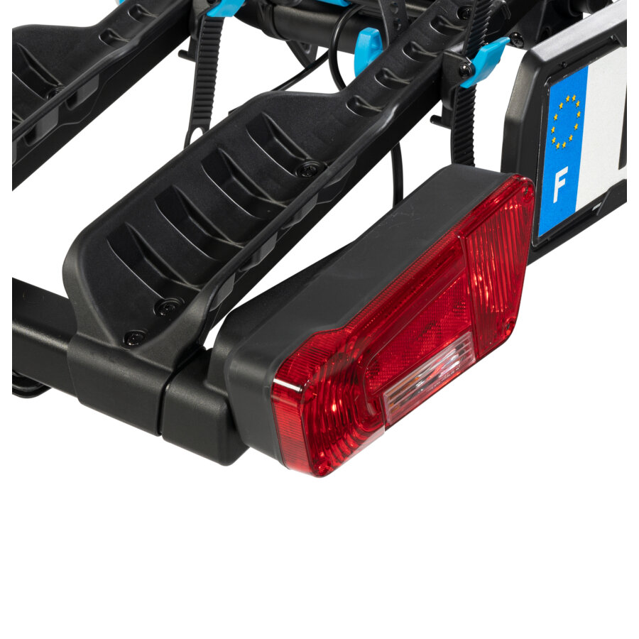 Contrairement à la plupart des porte-vélos, la gamme DECK 200 est équipée d’une plaque de feux arrières 6 fonctions et d’une prise de connexion pour votre attelage 13 plots, ainsi vous disposerez en plus d´un feu antibrouillard et d´un feu de recul, l´idéal pour circuler en toute sécurité et partout en Europe !