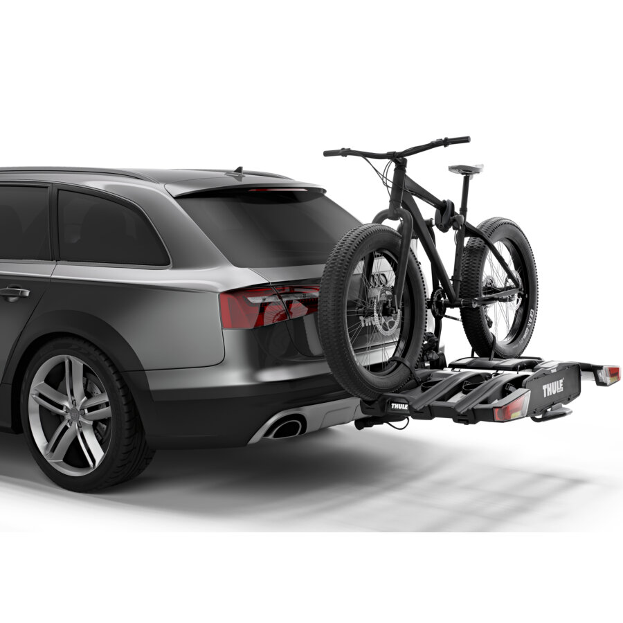 Le porte-vélos bascule afin d’accéder entièrement au coffre sans devoir décharger les vélos. Cette fonction de basculement pratique est actionnée au pied laissant ainsi les mains libres pour soutenir les vélos lors de l’opération.
