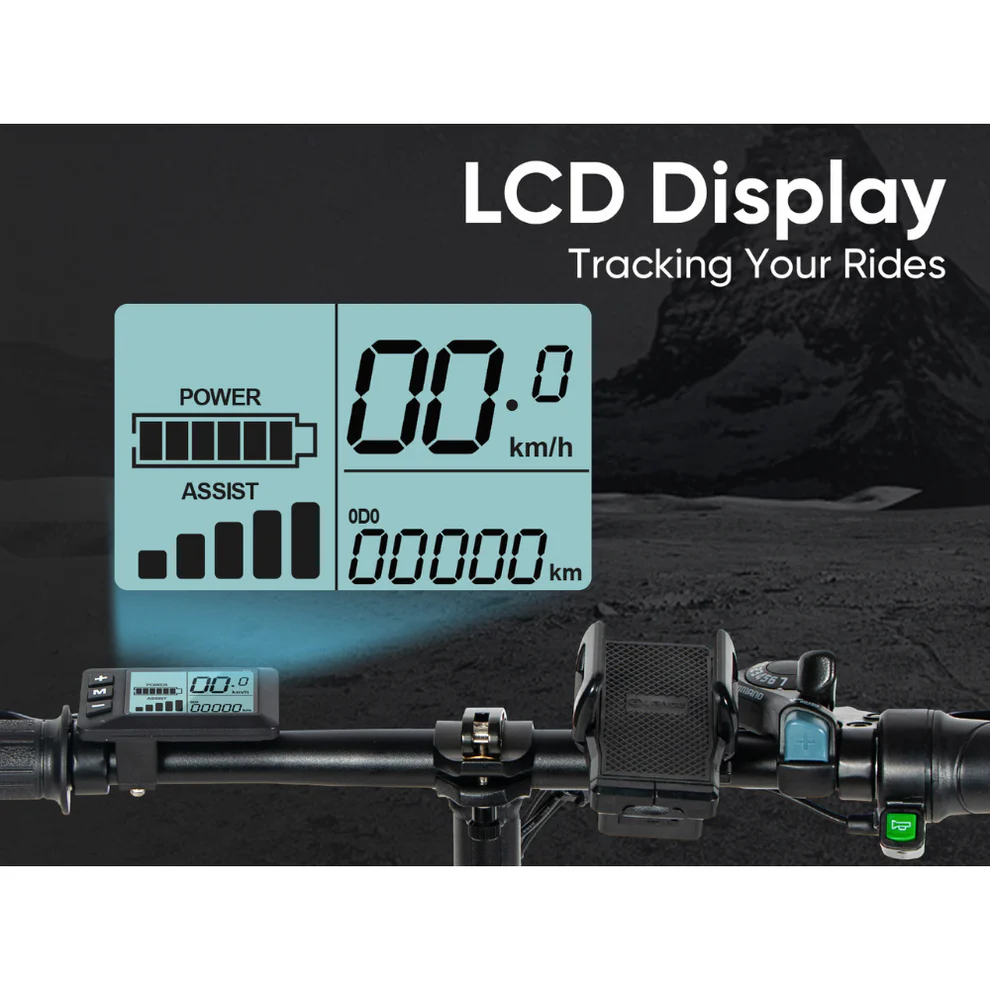 ✔︎  Écran LCD intelligent avec port USB – Suivi en temps réel : vitesse, autonomie, mode, distance parcourue.