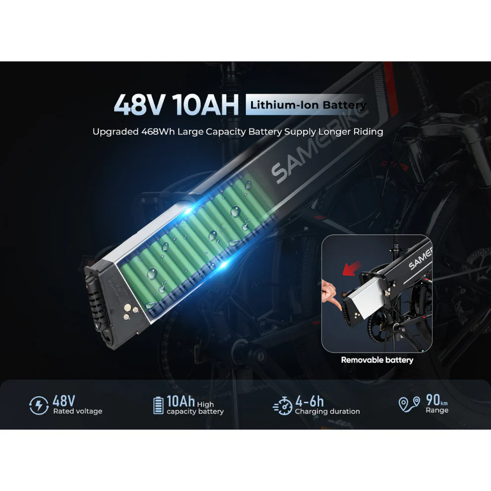 Le SAMEBIKE 20LVXD30-II est un vélo électrique pliant au design moderne, conçu pour les trajets urbains dynamiques et les déplacements multimodaux. Doté de pneus 20 x 1.95”, d’une double suspension, de freins à disque mécaniques performants et d’une batterie 48V 10.4Ah, il offre autonomie, confort et sécurité, où que vous alliez.