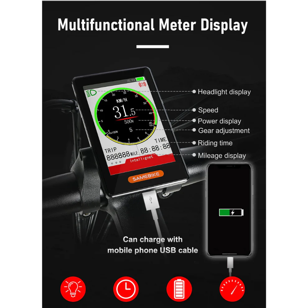 ✔︎ Écran LCD couleur intelligent – Suivi en temps réel : vitesse, autonomie, mode, distance parcourue.