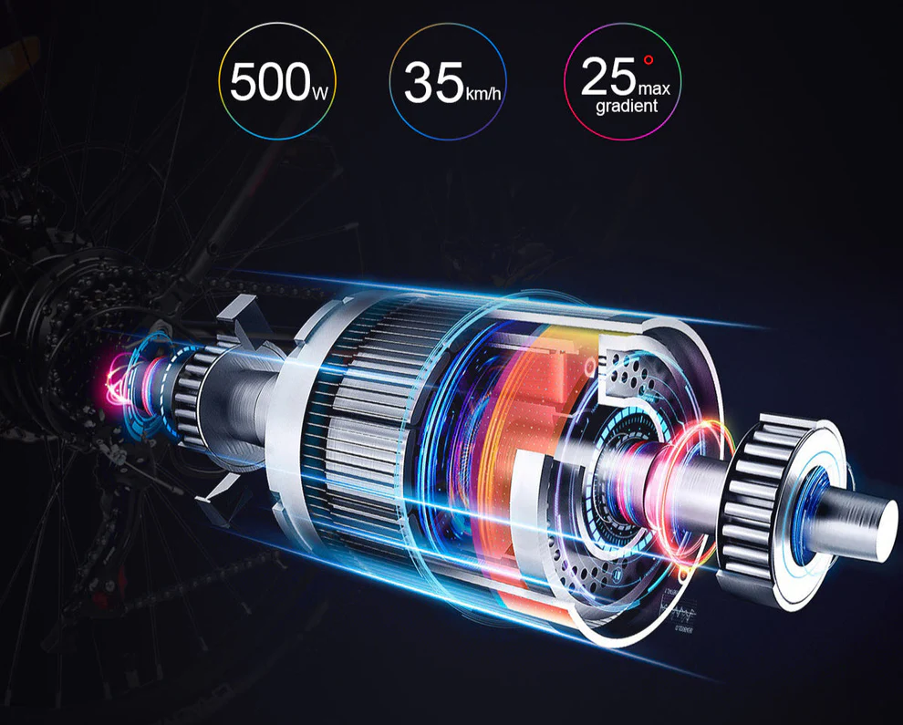 ✔︎  Moteur sans balais 500W – Puissance fluide pour franchir les pentes et accélérations dynamiques.