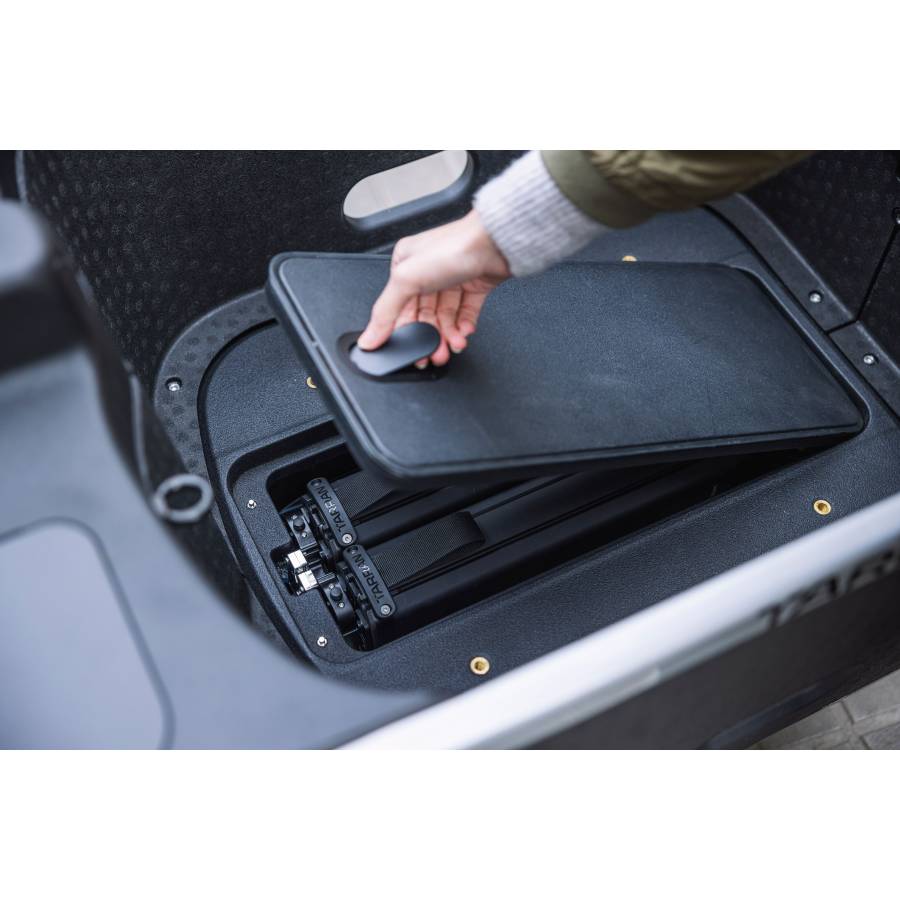 Le système Dynamic Dual-Drive™ déploie automatiquement des supports stabilisateurs à basse vitesse ou à l’arrêt pour éliminer les oscillations. Associé à une suspension performante et des algorithmes adaptatifs, il garantit des transitions fluides et sécurisées, même chargé. Conçu pour transporter jusqu’à 220 kg (conducteur, chargement et passagers) avec deux enfants côte à côte dans le coffre avant.