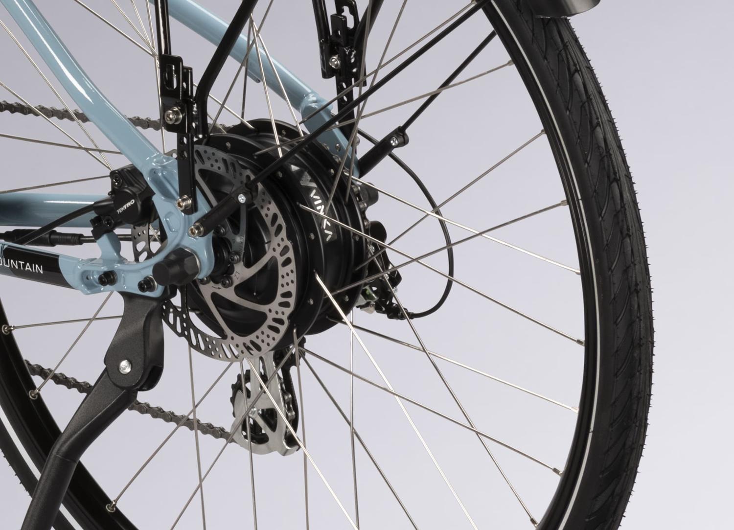 Le MOUNTAIN est conçu pour les cyclistes qui cherchent un VTC abordable. Il possède des freins hydrauliques pour assurer un freinage doux et puissant par tous les temps. La batterie est intégrée au cadre du vélo. Ce modèle est équipé d’un moteur roue arrière.