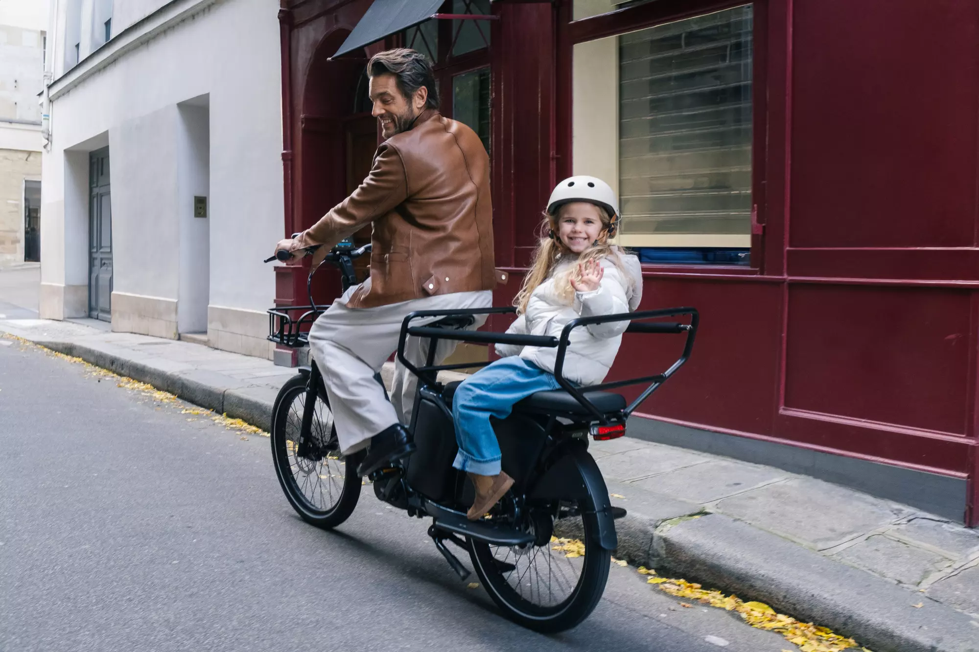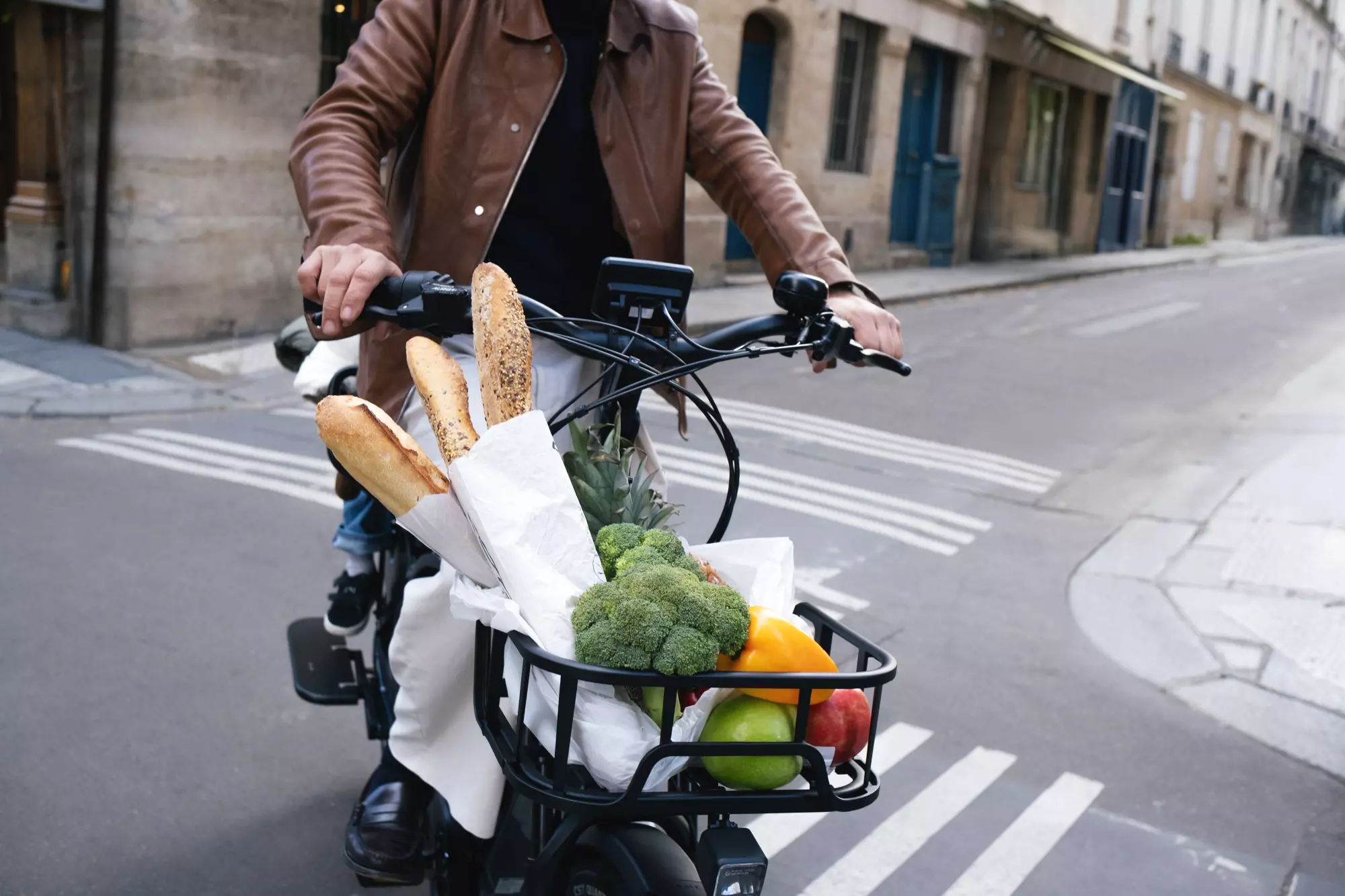 Le cadre du Longtail Duo est fabriqué en aluminium 6061 et dispose d’un empattement allongé de 1378,5 mm ainsi que d’un angle de direction de 69 degrés, contribuant à un comportement stable et prévisible, même avec une charge allant jusqu’au poids total maximal de 220 kg. Le moteur central Bafang M410 délivre une puissance de 250 W et un couple maximal de 80 Nm via un capteur de couple intégré, permettant à l’assistance de réagir de manière intuitive à l’effort exercé sur les pédales. La batterie lithium-ion de 720 Wh avec cellules LG est intégrée au cadre et offre une autonomie pouvant atteindre environ 100 km.