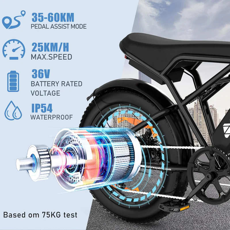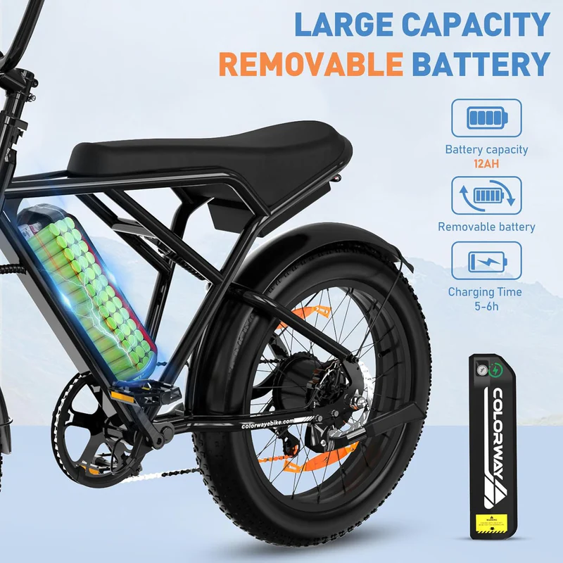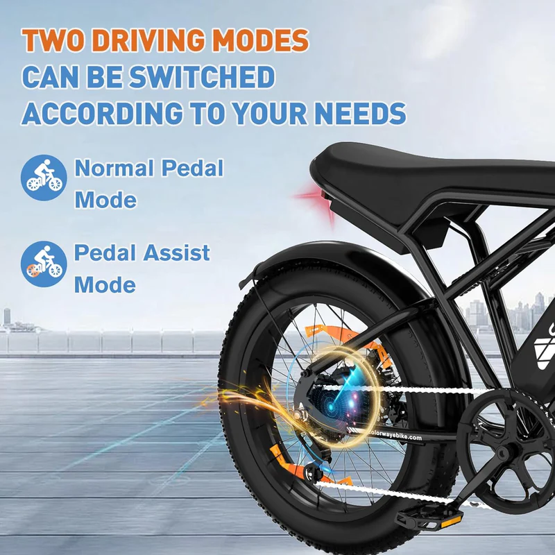 - Autonomie de la batterie plus longue : équipée d’une puissante batterie 36 V 12 Ah et d’un puissant moteur à engrenages sans balais, la vitesse maximale peut atteindre 25 km/h et le temps de charge ne prend que 5 à 6 heures, ce vélo électrique Colorway BK29G peut parcourir de plus longues distances. Ce vélo électrique pliable offre 2 modes de conduite : le mode pédale uniquement et le mode assistance au pédalage (sans accélérateur). L’autonomie maximale en mode assistance au pédalage est de 90 km.