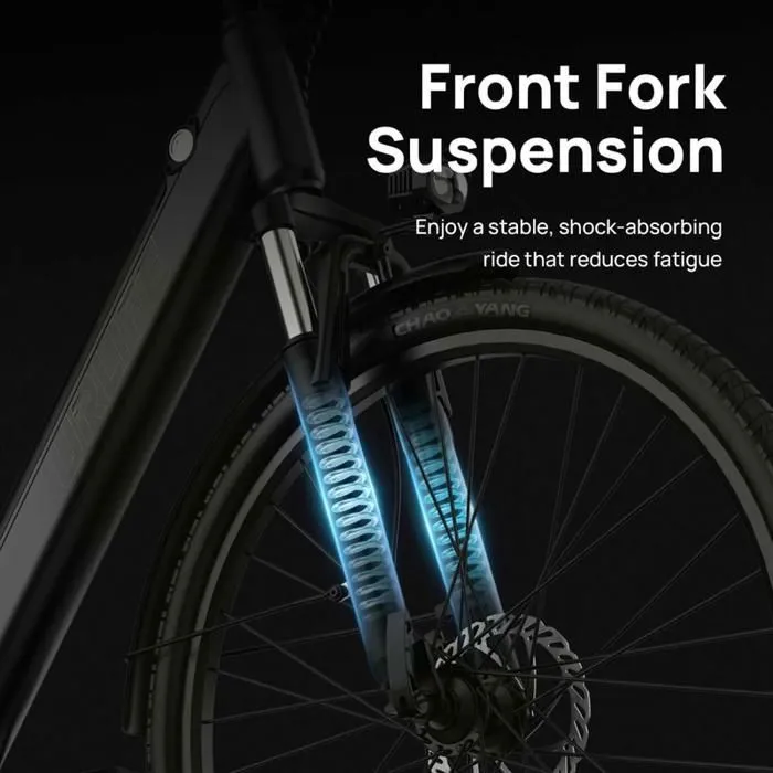 Ce vélo électrique de croisière offre une autonomie maximale impressionnante de 96 km par charge. * Suspension de fourche avant – La fourche à suspension avant haut de gamme de ce vélo électrique s’adapte facilement à différents terrains, offrant une conduite confortable et stable, que vous soyez en ville ou sur des sentiers. * Système de vitesses à 7 vitesses – Passez les vitesses en douceur grâce aux 7 vitesses professionnelles, pour un contrôle précis et une efficacité de pédalage optimale dans différentes conditions de conduite et sur différents dénivelés. * 3 modes de conduite intelligents – Personnalisez votre voyage avec trois modes polyvalents : puissance entièrement électrique pour une croisière sans effort, assistance au pédalage pour une autonomie étendue et mode pédalage traditionnel pour l’exercice.