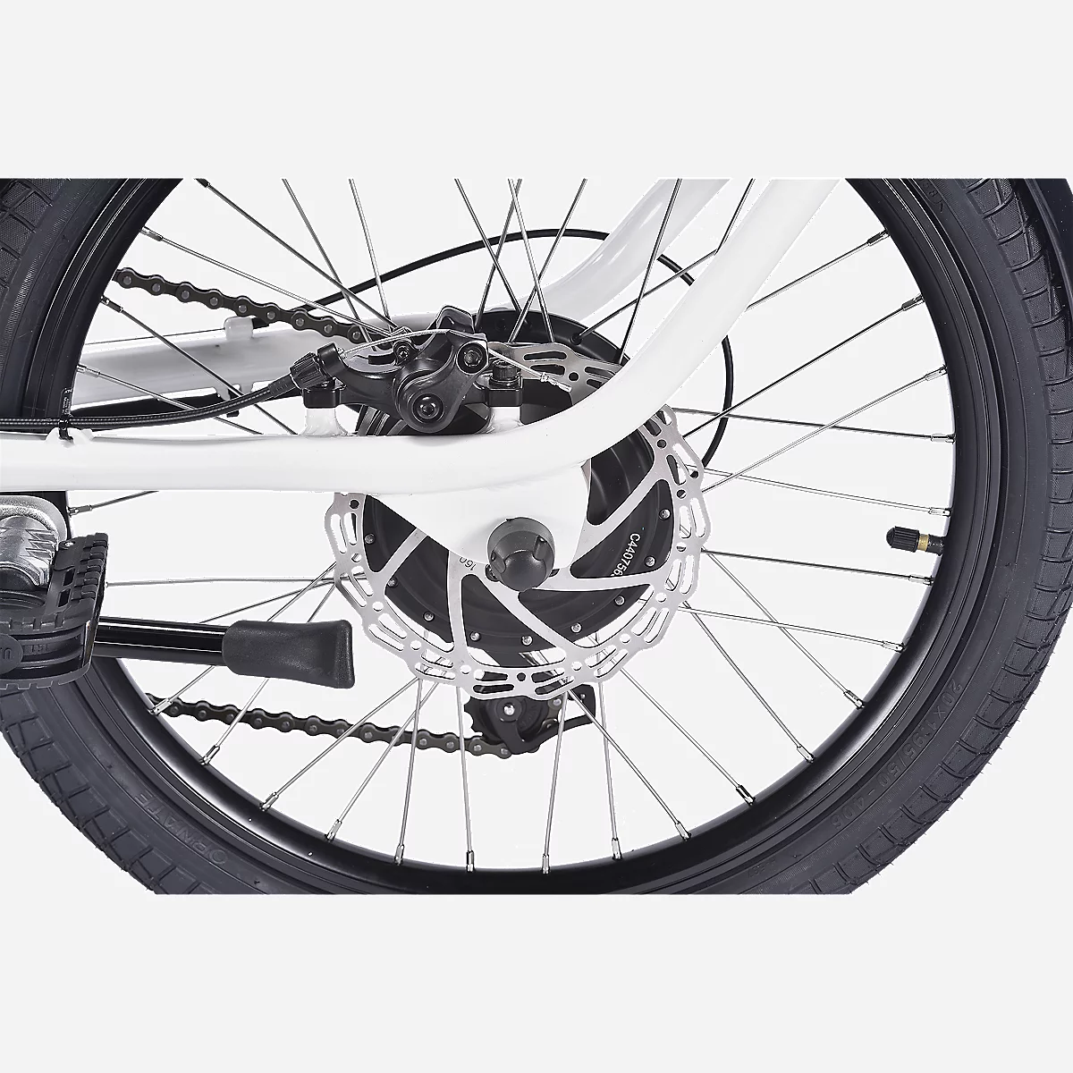 Pensé pour une utilisation urbaine quotidienne et la prise de transports, le E-FLEX 2.0 est le vélo électrique pliable de taille unique. Il est équipé d’une batterie lithium-ion 36V 345Wh logée dans le porte-bagage et d’un moteur arrière de 250W/45Nm.