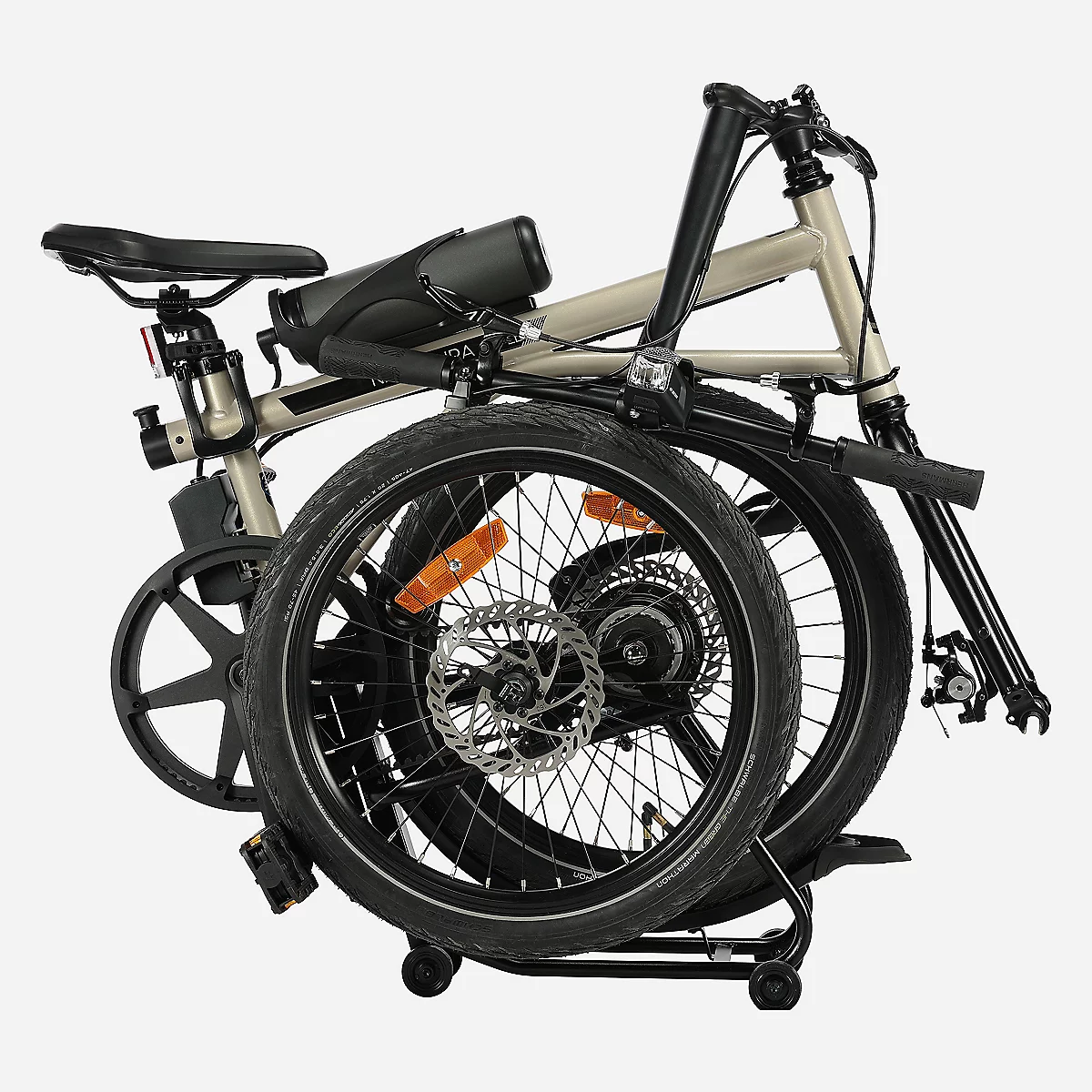 Vous pouvez également opter pour un pliage compact en 30 secondes, permettant de loger le vélo dans le coffre d’une petite voiture citadine ou le ranger dans un minimum d’espace.