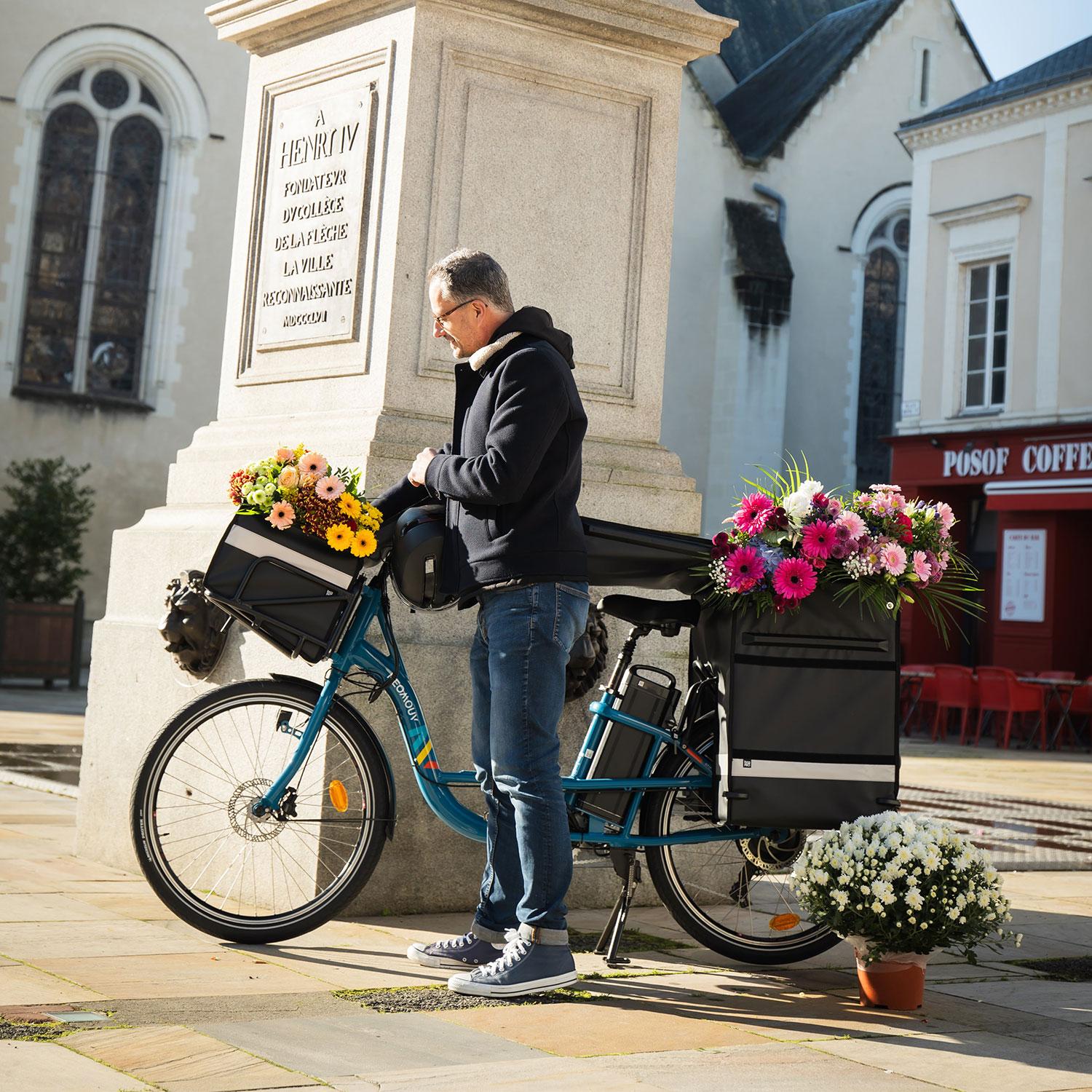 Notre vélo utilitaire NEOMOUV OPIA est conçu pour transporter des charges lourdes grâce à ses deux portes-bagages. Les démarrages et les arrêts sont facilités par son enjambement bas et sa gachette d’aide au démarrage.