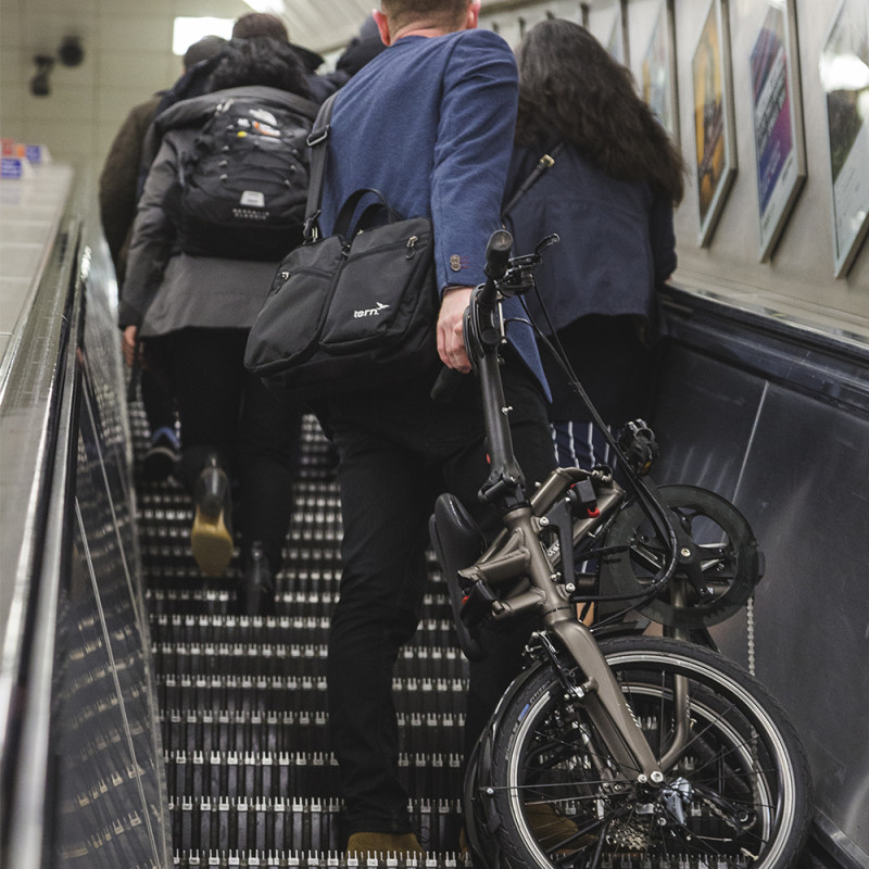 Plus compact que tous les autres modèles dotés de roues 20 pouces, le BYB prend un minimum de place quand il est plié. Il peut se ranger discrètement dans votre bureau, au restaurant, dans les couloirs étroits, ainsi que dans les transports en commun (bus, train, métro). C’est un moyen de déplacement idéal pour les cyclistes intermodaux, qui ont l’habitude de faire des trajets assez longs au quotidien, avec des tronçons en bus/train et d’autres à vélo.