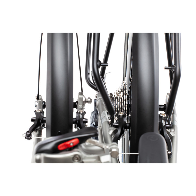 Jantes en aluminium avec une construction à double paroi, pneus Schwalbe Citizen Reflex avec une protection anti-crevaison, freins V-Brake, dérailleur Shimano Acera… Tous ces composants ont été choisis pour leur grande fiabilité.