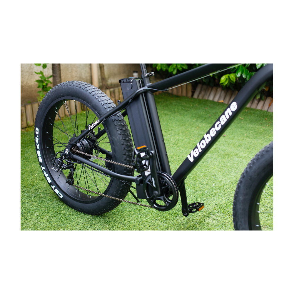 Avec ses roues de 26 pouces et des pneus de 4″, le vélo électrique Velobecane Fatbike sera le vélo électrique idéal pour rouler sur des terrains rudes ou neigeux.