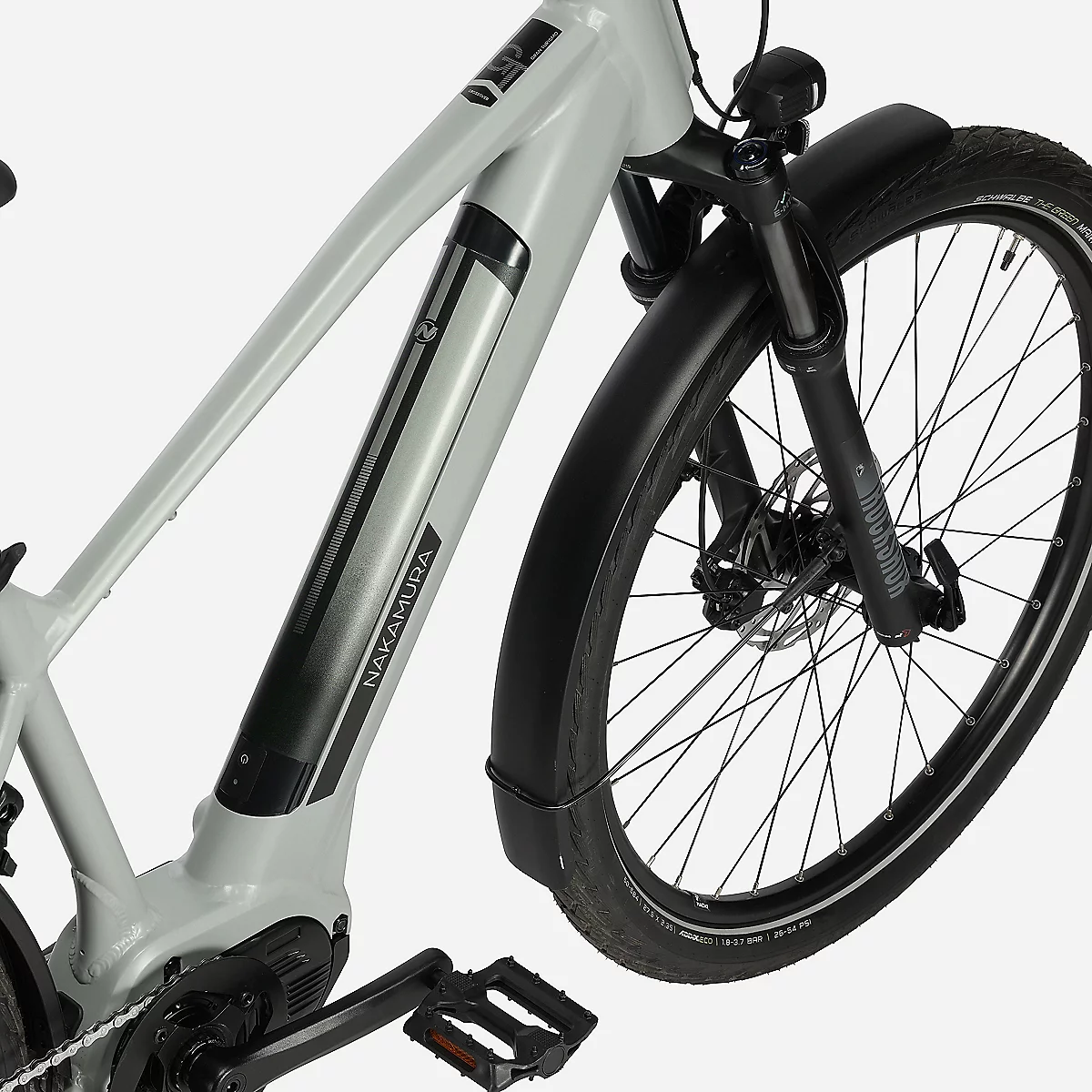 PERFORMANCE : Le moteur central NAKA E-POWER MAX, avec 100Nm de couple, vous aide à grimper toutes les côtes même les plus abruptes. La batterie de 460 Wh est intégrée dans le cadre en aluminium, pour un design épuré et un aérodynamisme accru.