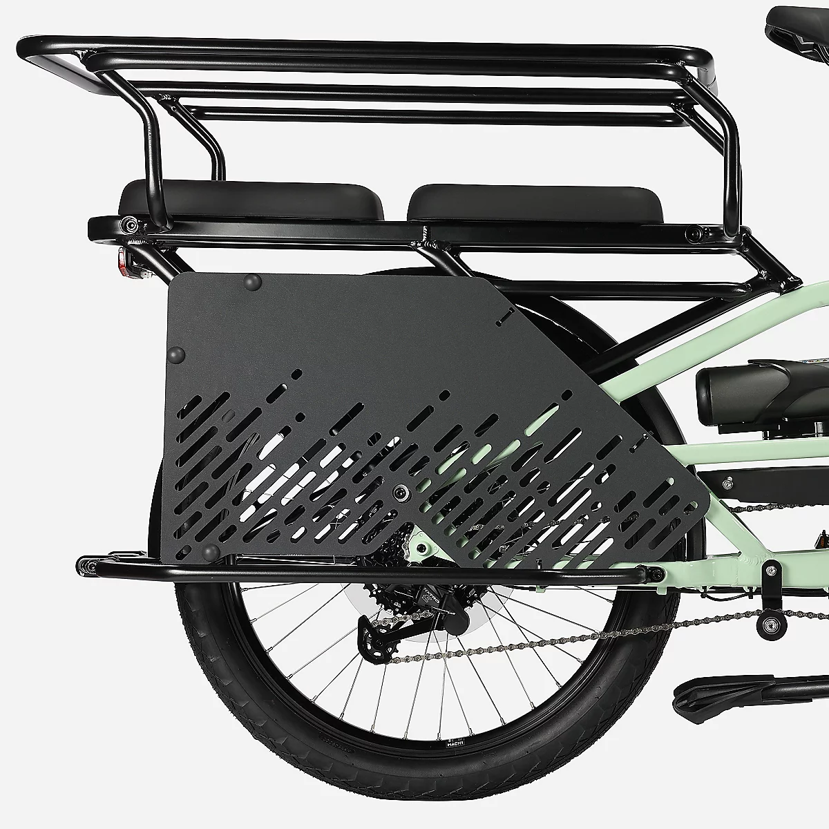 Le porte-bagage arrière (charge max. 80Kg) est équipé de 2 sièges indépendants pouvant être démontés sans outils. Sous ces sièges se trouvent 2 systèmes d’accroche MIK® HD sur lesquels vous pouvez fixer des porte-bébés, des paniers ou des sacoches compatibles MIK®.