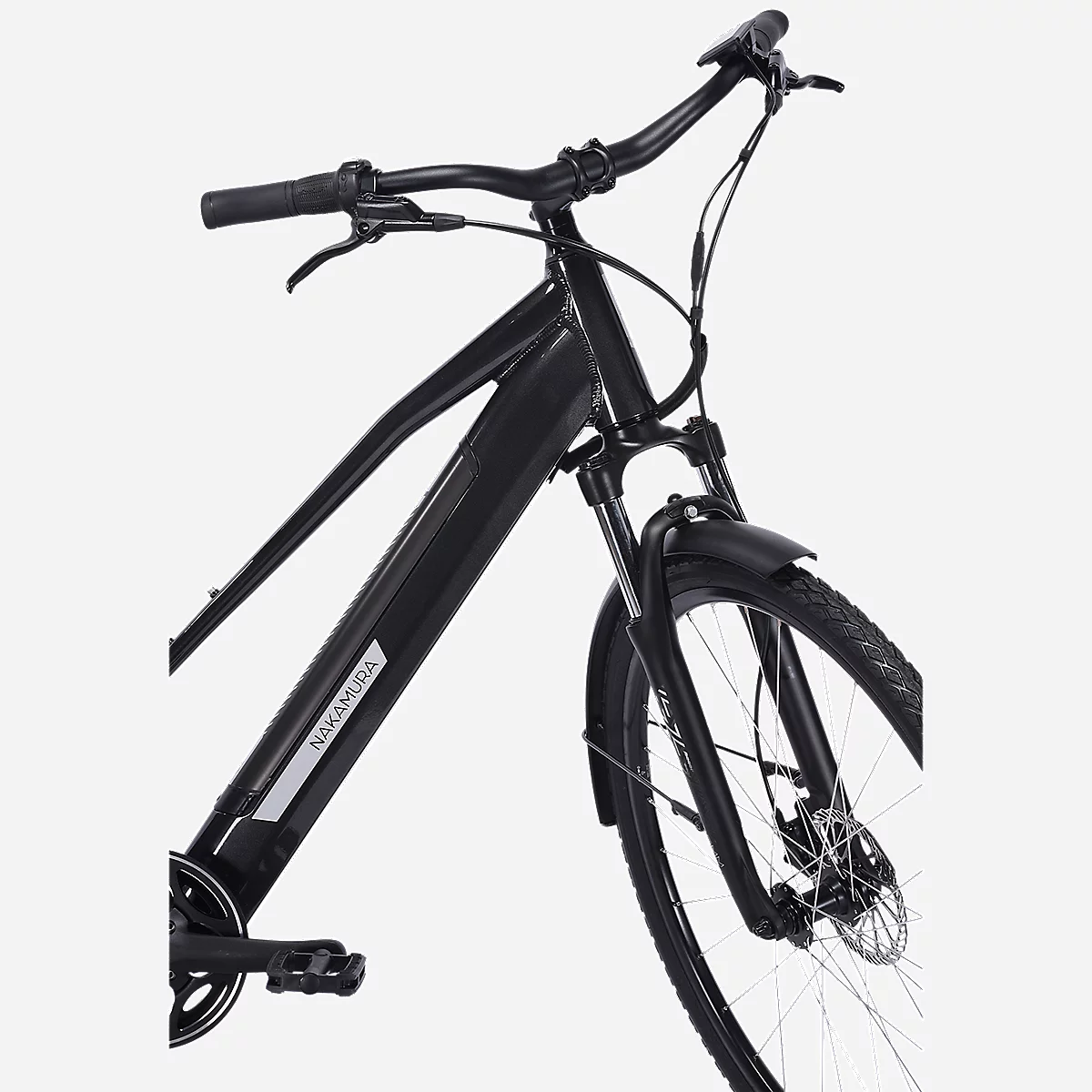 Le Nakamura CROSSOVER S est le vélo polyvalent électrique pour adulte de la marque NAKAMURA permettant d’emprunter routes et chemins. Ce vélo vous propose la poussée supplémentaire d’un moteur électrique dans le moyeu arrière, donnant un vélo vif et facile à conduire.