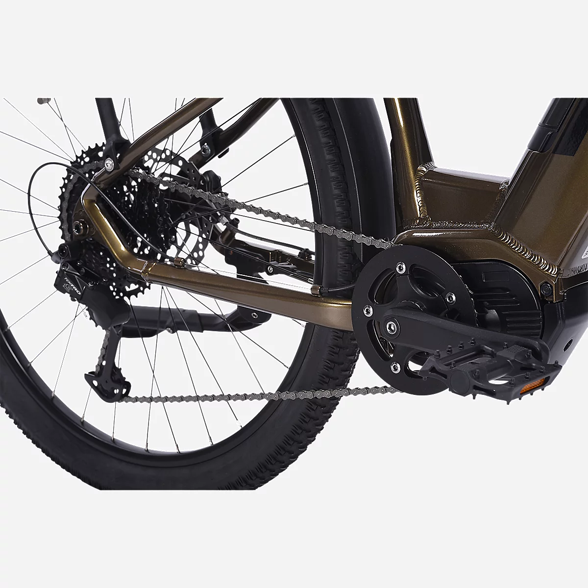 Confort : Le cadre ouvert à enjambement bas facilite la montée et la descente du vélo. La fourche à suspension de 120mm de débattement absorbe toutes les imperfections de la chaussée ou des chemins. La tige de selle à suspension vient renforcer ce sentiment de confort. Enfin, le nouveau display TFT couleur vous permet de suivre en un coup d’œil le mode d’assistance engagé et d’optimiser l’utilisation de votre batterie.