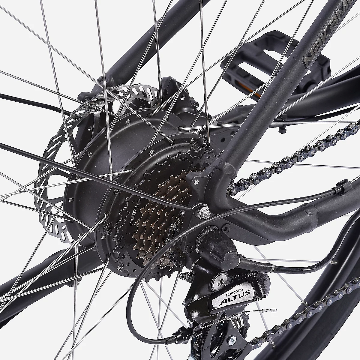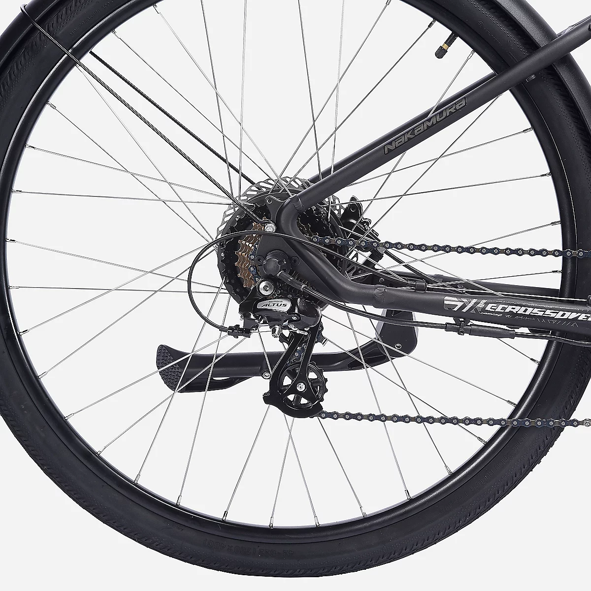 Le Nakamura E-CROSSOVER S est le vélo polyvalent électrique pour adulte de la marque NAKAMURA permettant d’emprunter routes et chemins. Ce vélo vous proposera la poussée supplémentaire d’un moteur électrique dans le moyeu arrière, donnant un vélo vif et facile à conduire.